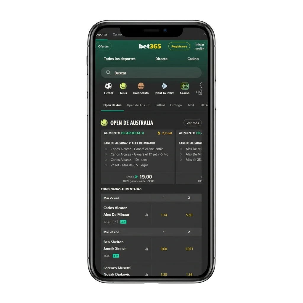 La aplicación de Bet365 integra todas las funciones de la plataforma en un entorno adaptado a pantallas táctiles. Los menús están organizados por categorías claras: deportes, casino, en vivo, pagos y cuenta. La navegación entre secciones es rápida gracias a una barra inferior fija que mantiene los accesos principales siempre visibles. Las notificaciones en tiempo real te informan sobre cambios en cuotas y resultados de eventos. La app admite múltiples métodos de pago para depósitos y retiros directamente desde el menú de tu perfil. En términos de contenido, la biblioteca de juegos y mercados deportivos disponibles en la app coincide completamente con la versión de escritorio.